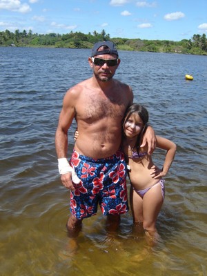 happy in lake. mi daugther.