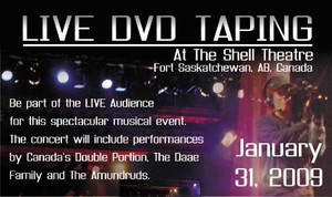 Join the Amundruds, Canada's Double Portion & The Daae Family at the Shell Theatre in Fort. SK, AB on January 31st @ 6:30 p.m. for a live concert DVD taping. Admission is free. A love offering will be received.